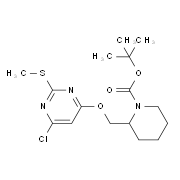 英文名称:2-(6-Chloro-2-methylsulfanyl-pyrimidin-4-yloxymethyl)-piperidine-1-carboxylic acid tert-butyl ester