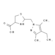 英文名称:2-[(4-Ethyl-3,5-dimethyl-1H-pyrazol-1-yl)methyl]-1,3-thiazolidine-4-carboxylic acid